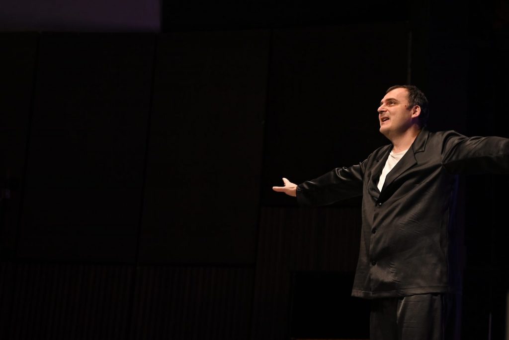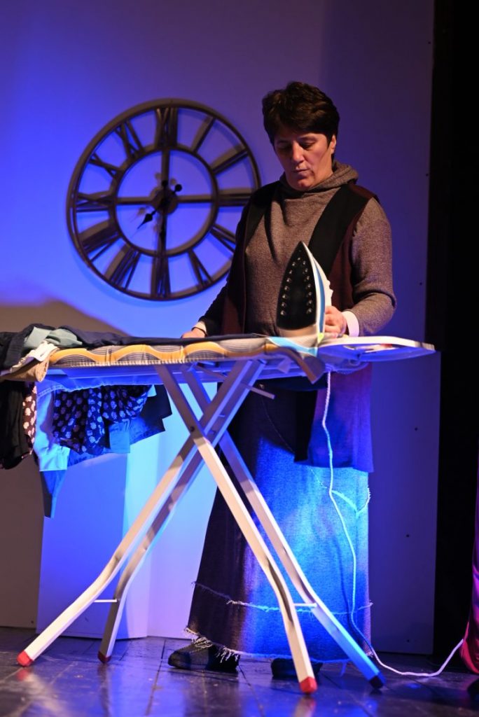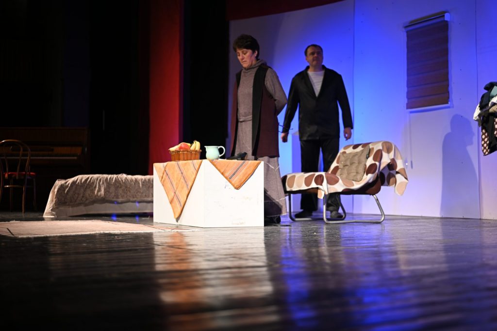 Actors: Mihajlo Petrevski and Violeta Petkoska;The scenography was prepared by: Dervish Zeqiri, Emin Emini, Mersim Efatoski; Costumes and stage decoration: Aleksandra Petrevska; Master of Lights: Fazli Asani; Music and video clip selection: Mateo Petrevski; Google Voice: Branislav Stojanoski; Directed by: Mihajlo Petrevski. Although the drama was written in the last century, it presents the problems of a married couple that are still current today but presented in a modern way.