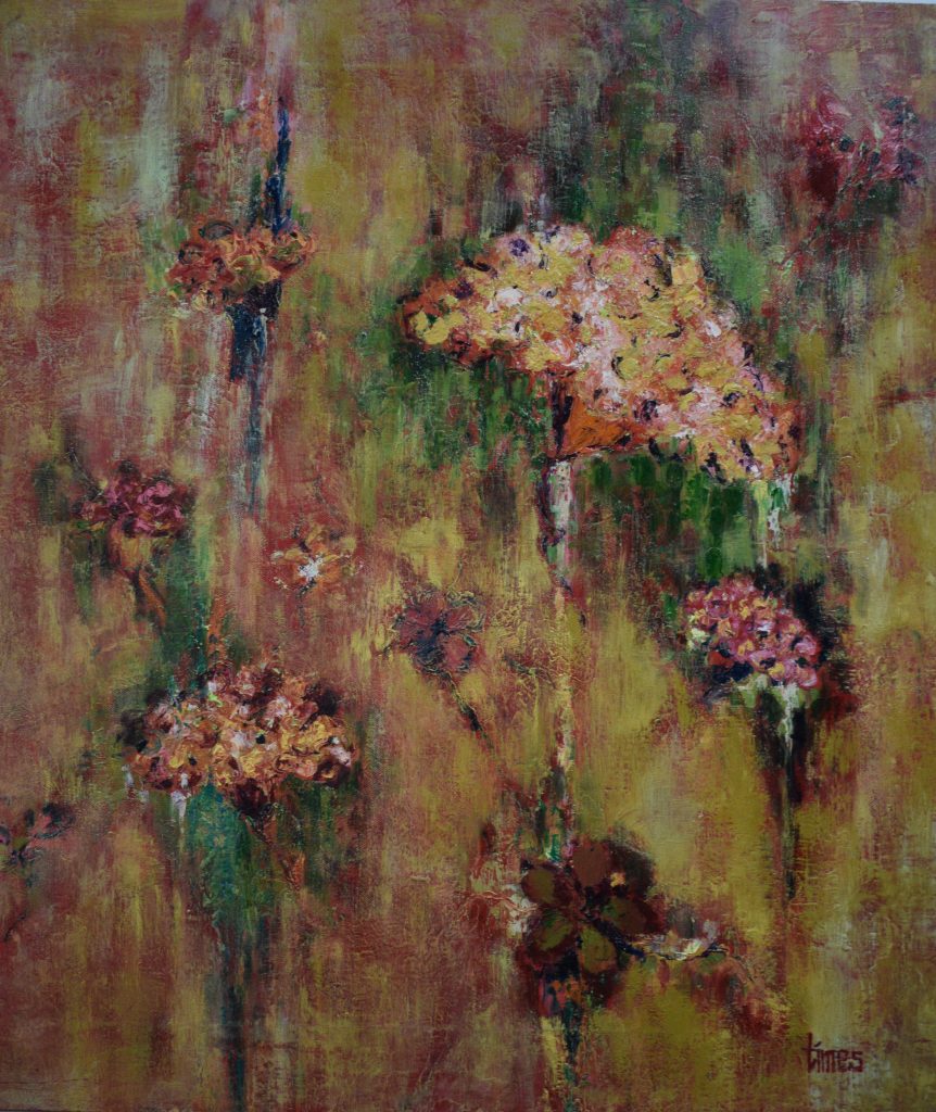 Preoccupied with this motif, she aimed to display the warm poetics of flowers, where the value of color and the wide spectrum of their color prevail. It places the viewer in a moment of pure pleasure, so that it transforms the soul into an imaginary garden.