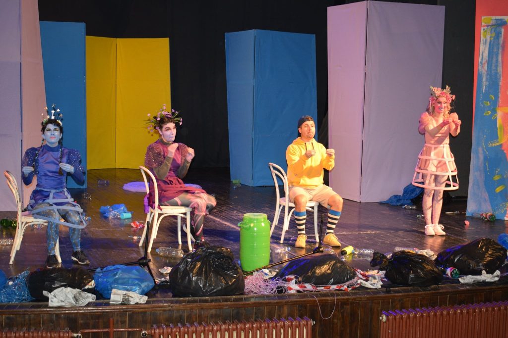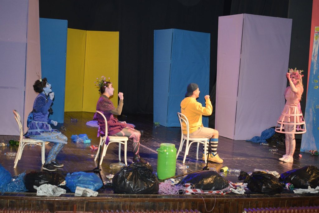Tema kryesore ishte eko-katastrofa që po ndodh në botë dhe personazhet e shfaqjes shkojnë së bashku nëpër botë për të pastruar mbeturinat në rrugë dhe në male. Me këtë performancë didaktike, fëmijët edukohen se mbeturinat duhet të hidhen në mënyrë selektive në koshët e duhur të riciklimit, në mënyrë që të bëhet ndërgjegjësimi dhe zakonet e më të vegjëlve për rëndërsinë një natyre të shëndetshme.