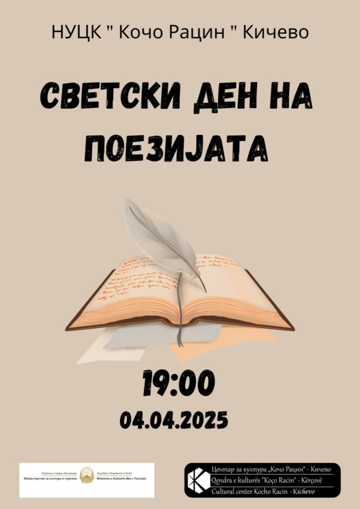 Dita Botërore e Poezisë në Qendrën për Kulturë “Koço Racin” – Kërçovë u shënua në mënyrë modeste më 4 prill, për shkak të ngjarjes së padëshiruar që ndodhi në Koçan më 16.03.2025.